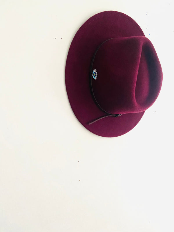 We are so excited to introduce our rancher hat collection! With the most perfect leather bow trim, our wool felt hats are perfect for any fave fall and winter outfit!!   berry brown leather bow trim 13 1/2" inches in Diameter 4...